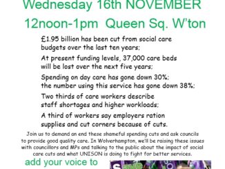 Wolverhampton, Bilston & District Trades Union Council Delegate Minutes 20 October 2016 1. Welcome and Introductions to delegates and visitors plus apologies: Present – Sis Taylor(UNITE-CYW), Halfpenny (NUT), Dixon(UNISON), Lowe (UNITE). […]