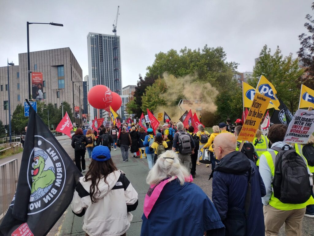 - 11 March 2025 – indefinite strike begins. Effective picketing disrupts Birmingham City council strike-breaking
